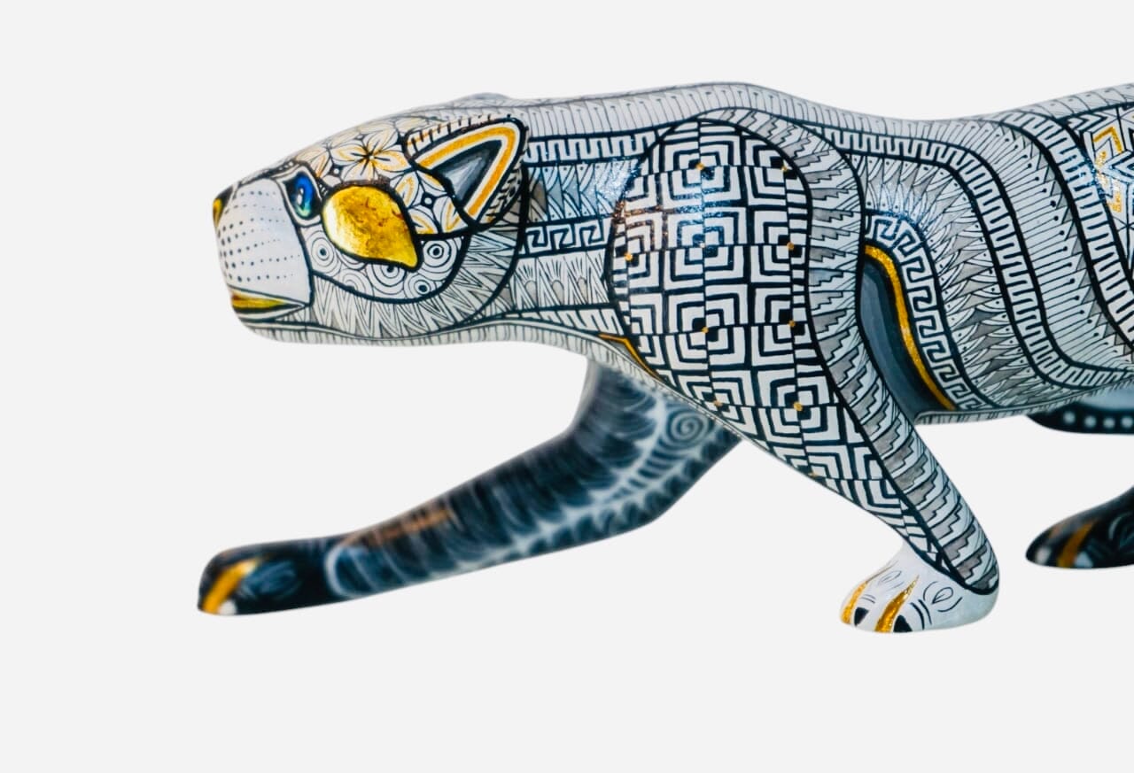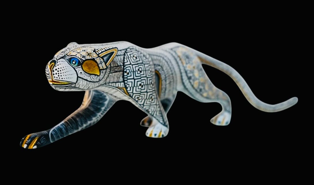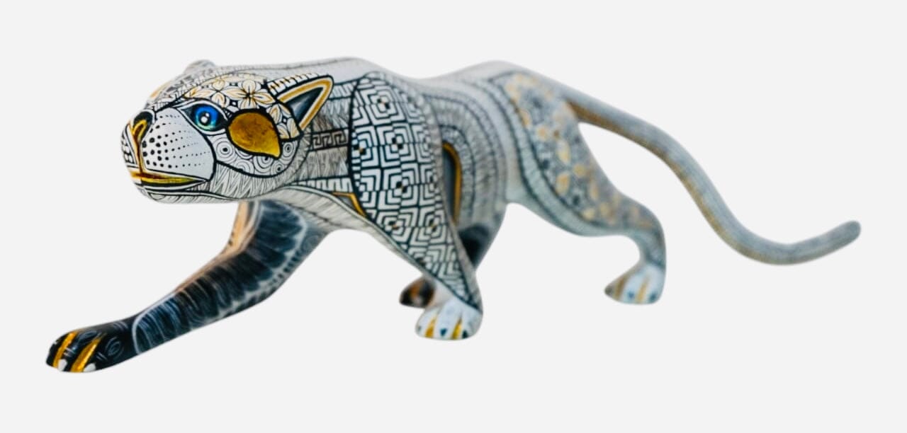 Each figure is handmade from copal wood using machetes and pocket knives. Artists carve the basic shape of a figure in a few days and then spend several days creating the fine detail. They further hand sand each piece and then spend several days in the painting process. The artists use fantasy and imagination in their intricately painted designs. The carvings are full of movement and humor and are an authentic folk art form that knows no boundaries.