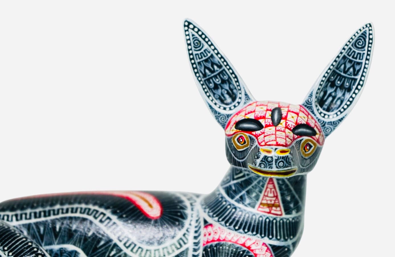 Each figure is handmade from copal wood using machetes and pocket knives. Artists carve the basic shape of a figure in a few days and then spend several days creating the fine detail. They further hand sand each piece and then spend several days in the painting process. The artists use fantasy and imagination in their intricately painted designs. The carvings are full of movement and humor and are an authentic folk art form that knows no boundaries.