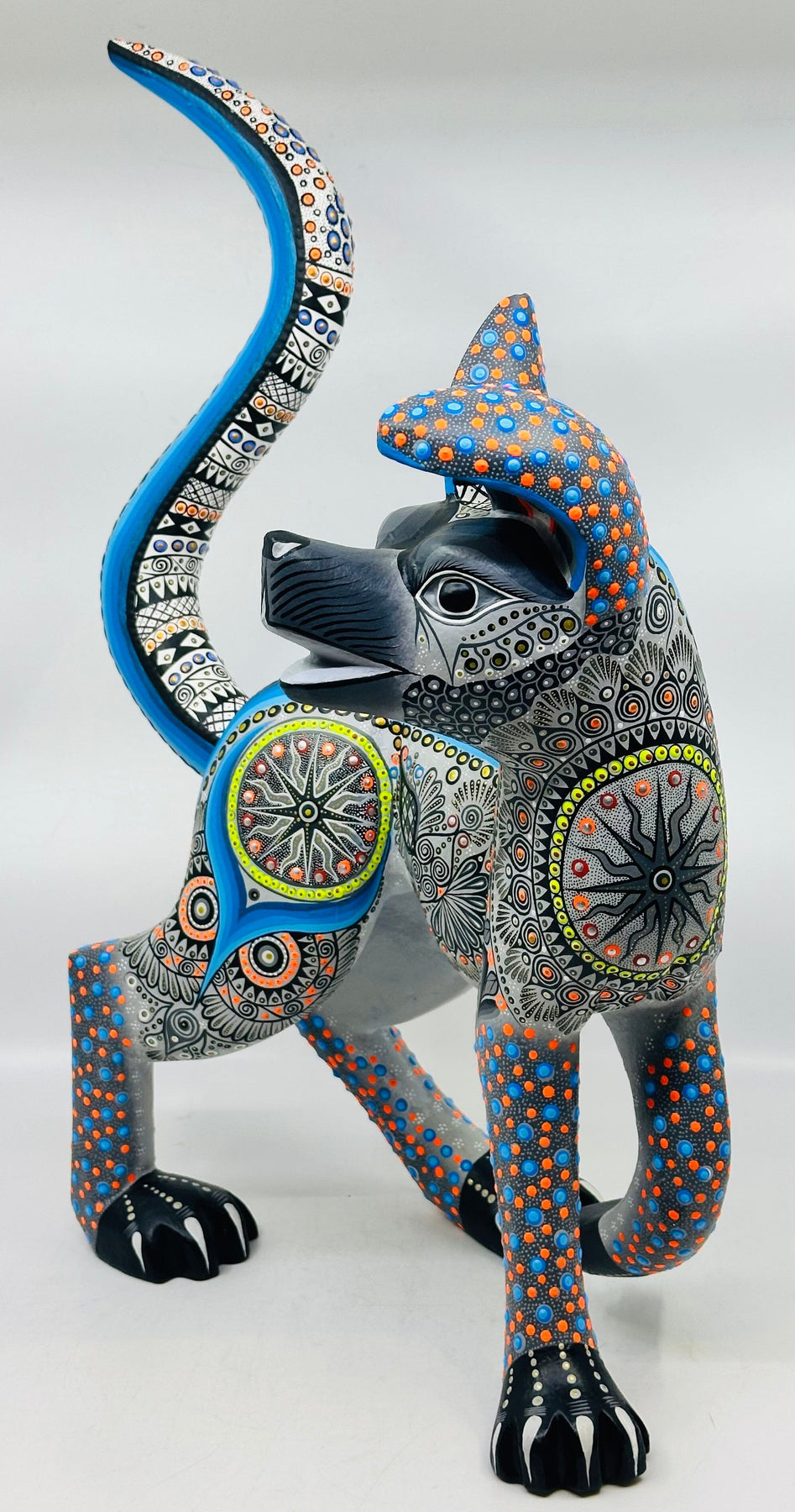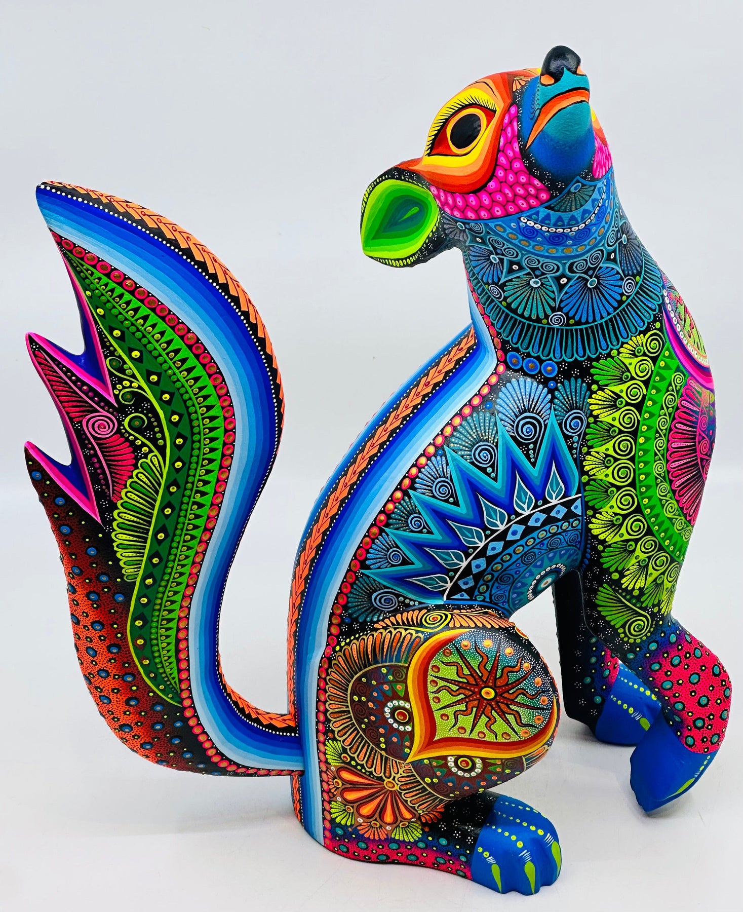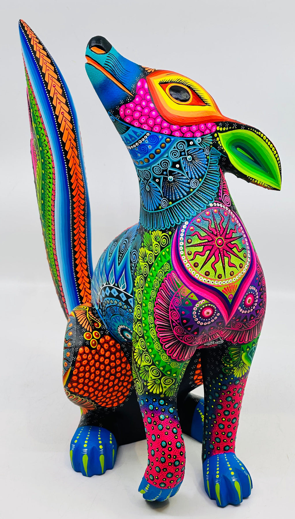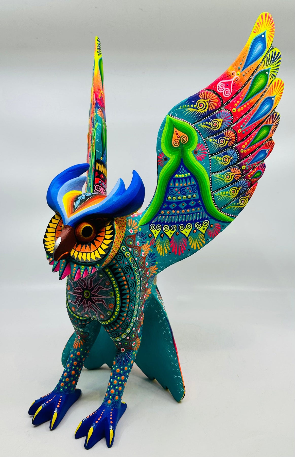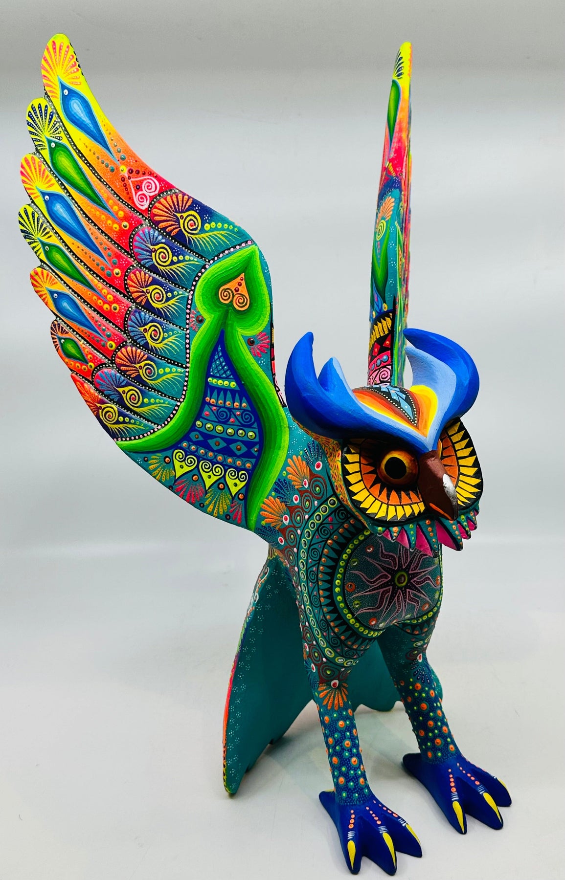 The more otherworldly of these pieces are called Alebrijes; creatures born from the fever dreams of famed Mexican artist Pedro Linares in the late 1930's. This imagery has come to be predominant in Mexican wood carving and paper maché artwork.