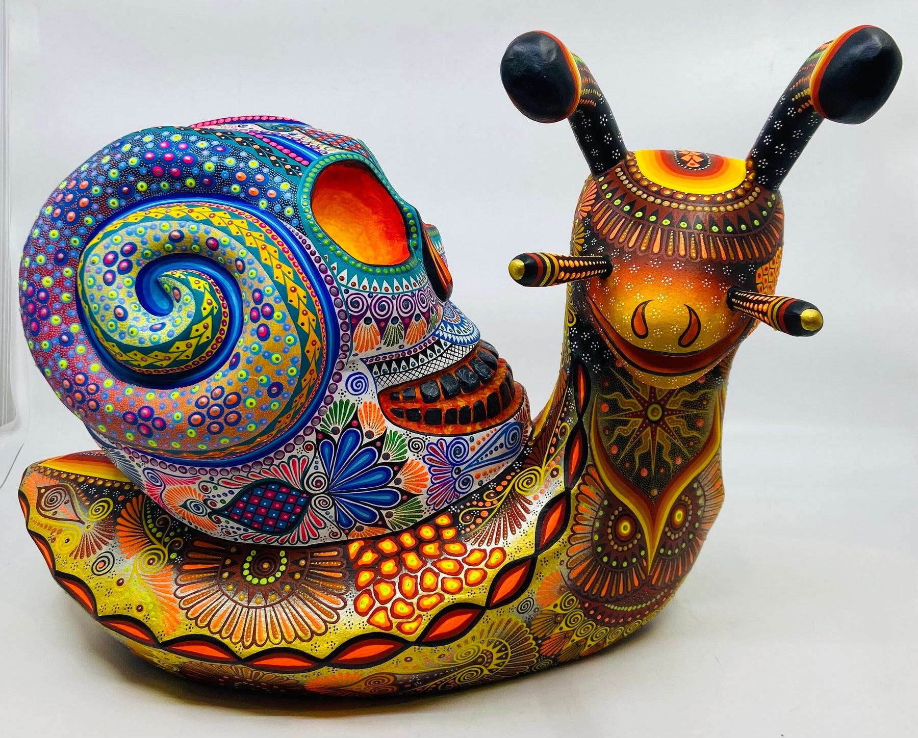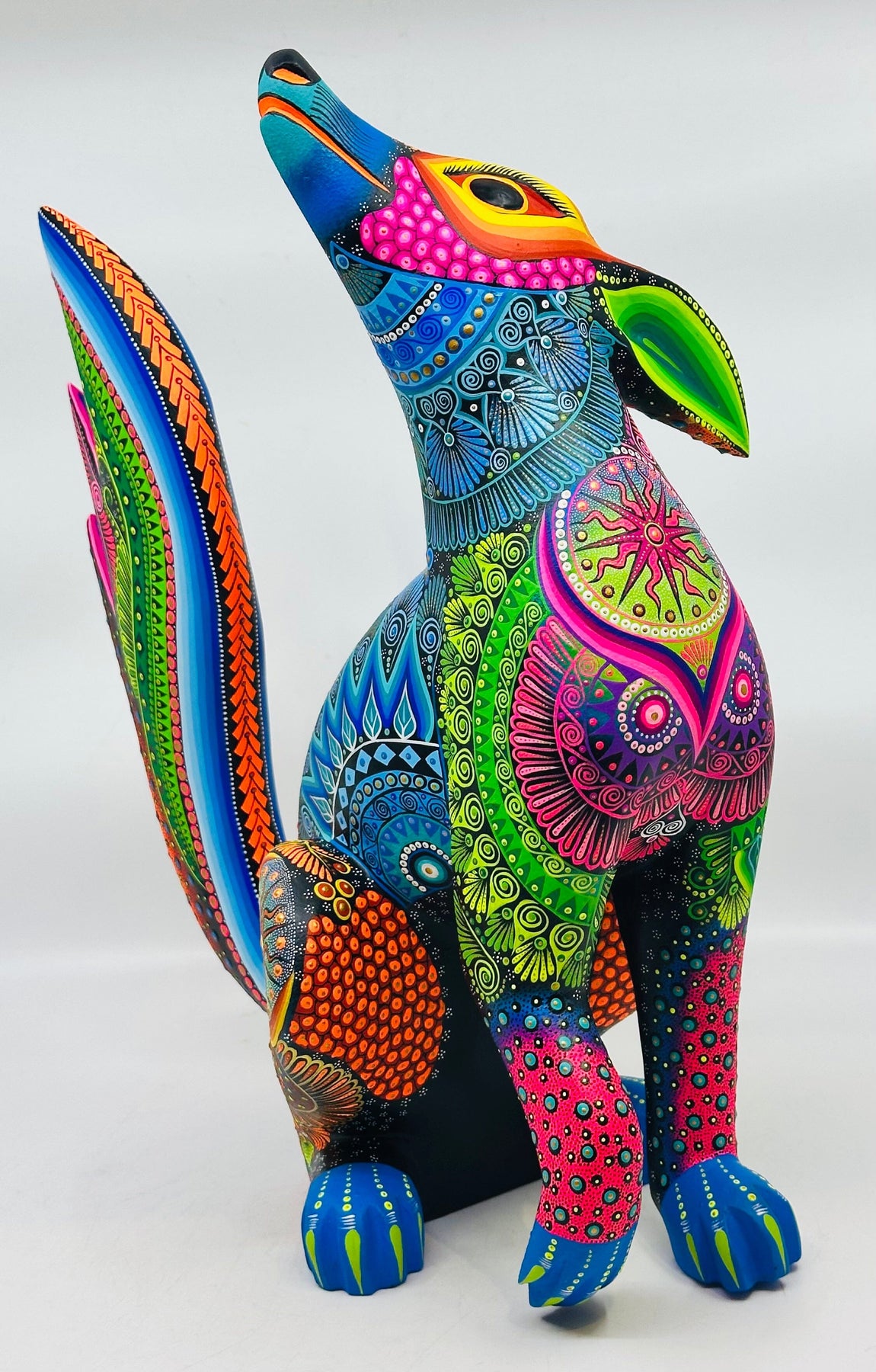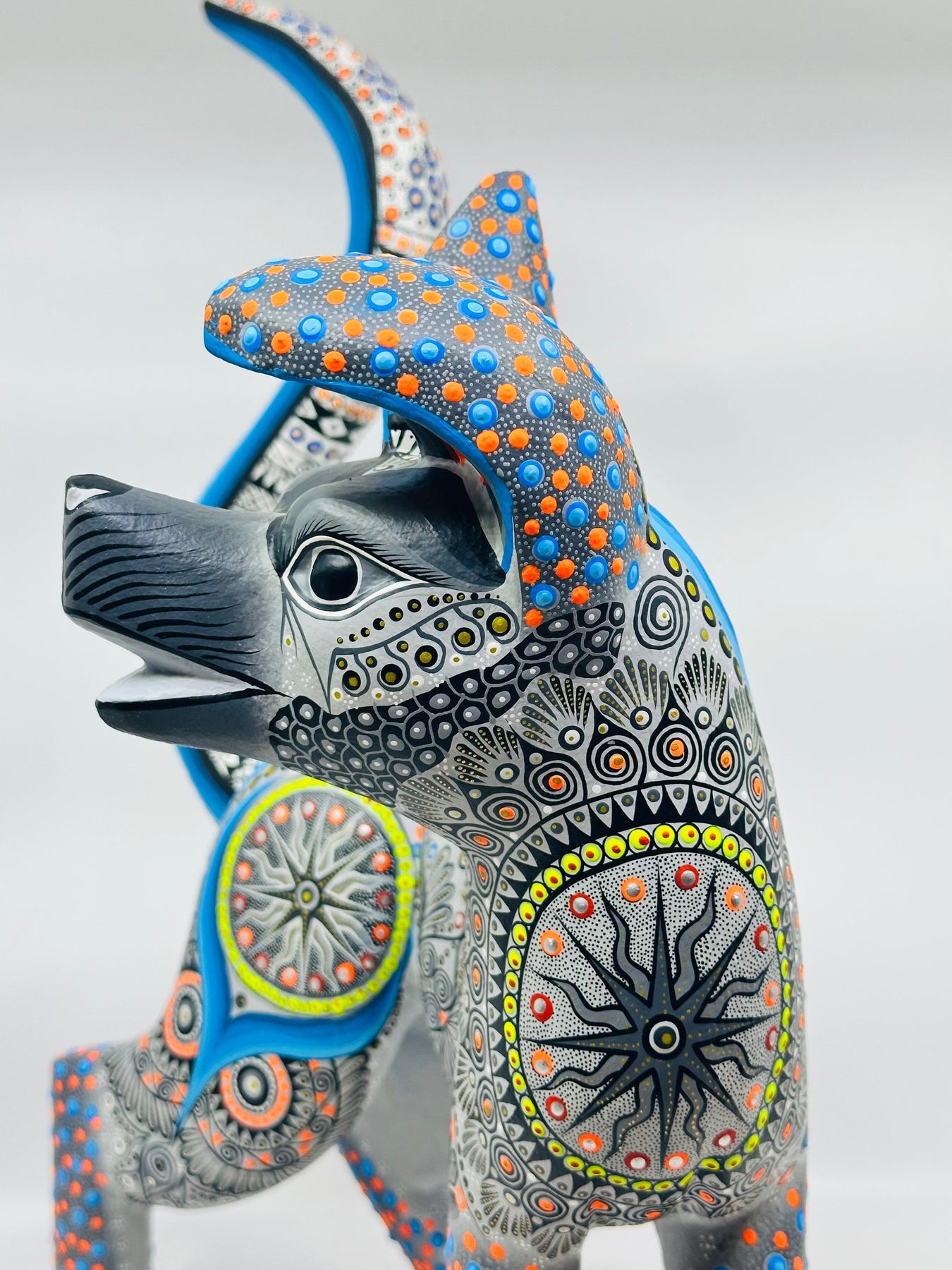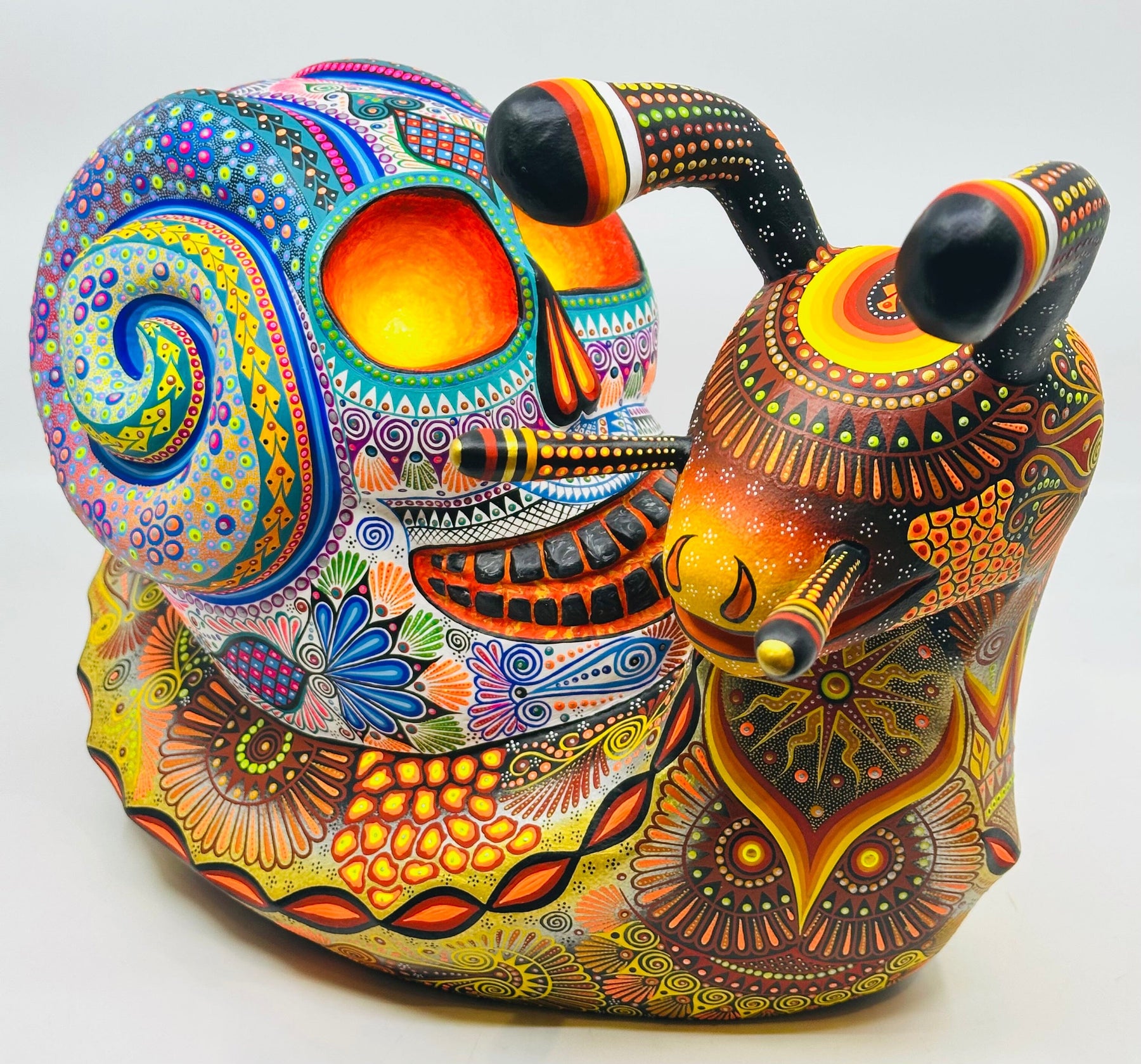 The more otherworldly of these pieces are called Alebrijes; creatures born from the fever dreams of famed Mexican artist Pedro Linares in the late 1930's. This imagery has come to be predominant in Mexican wood carving and paper maché artwork.