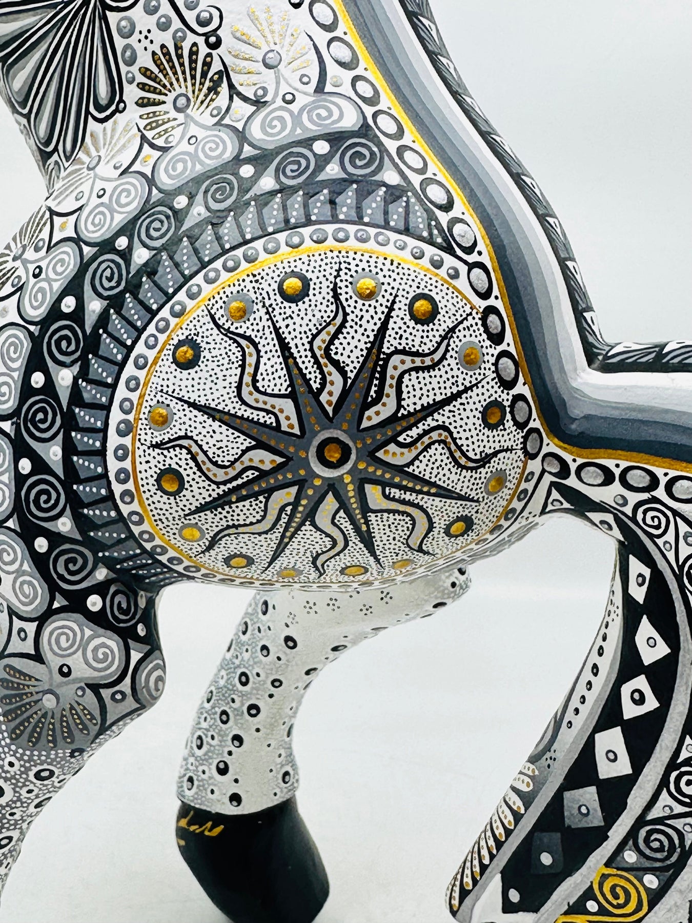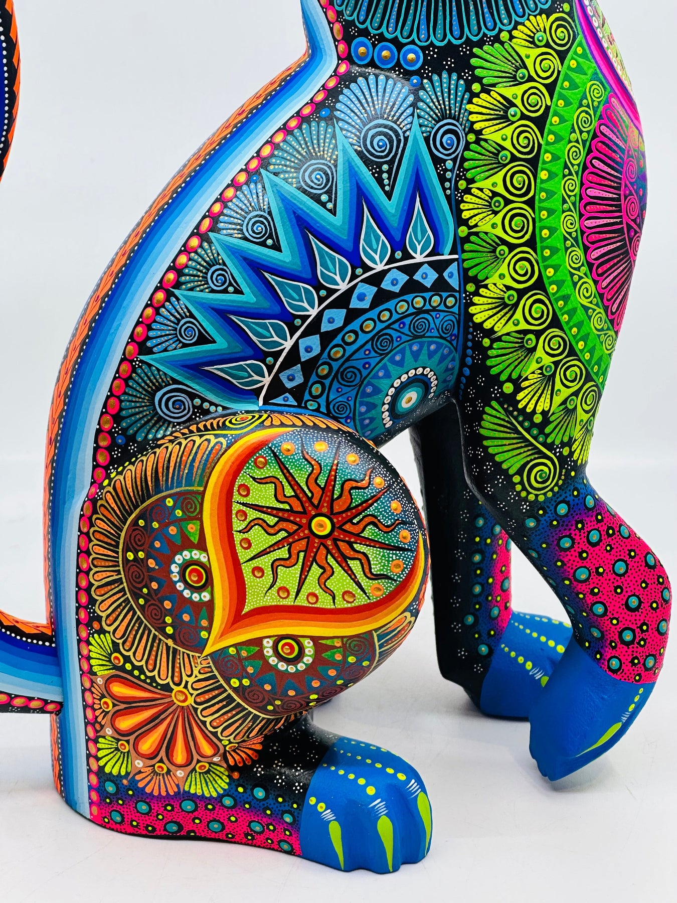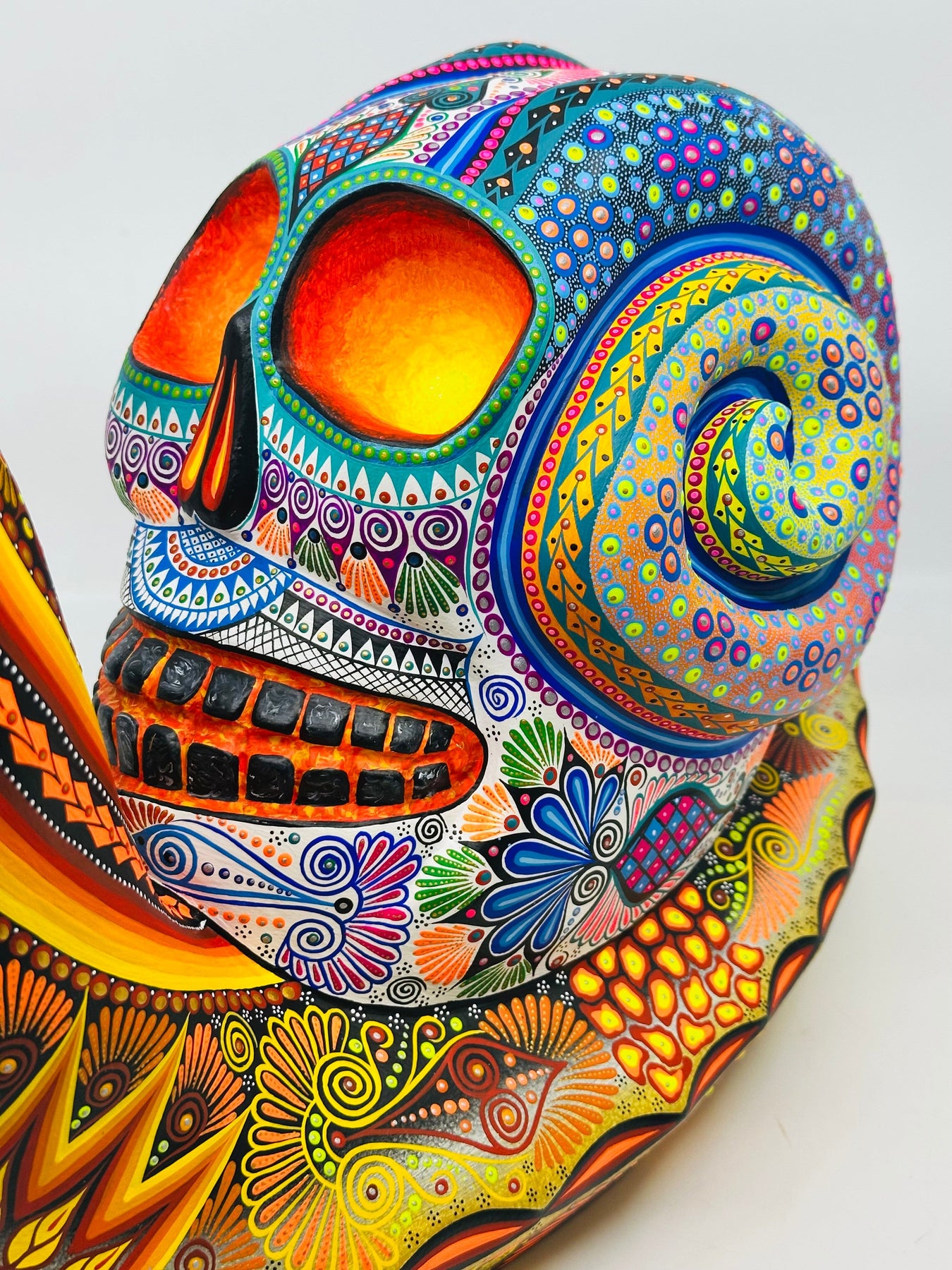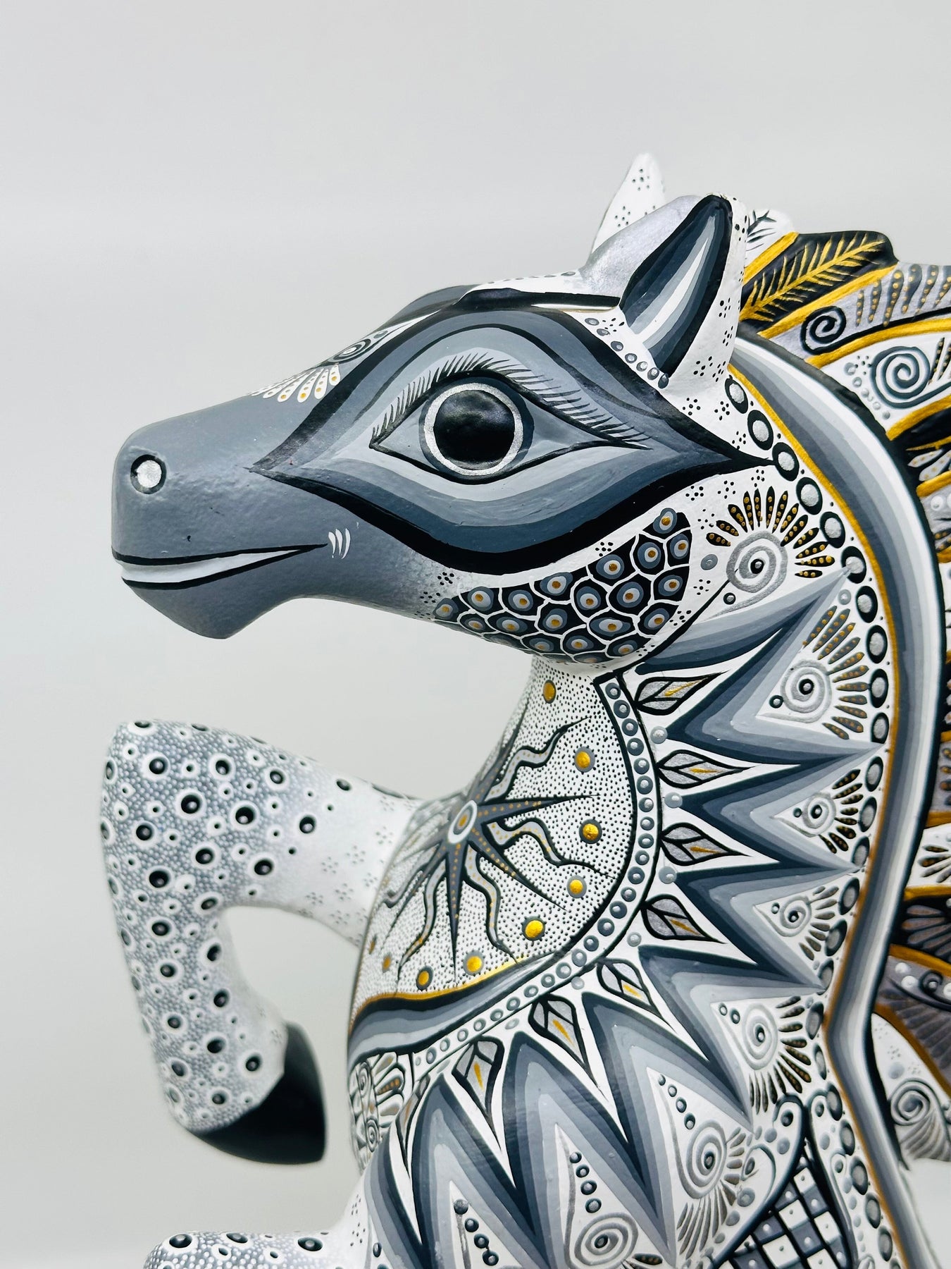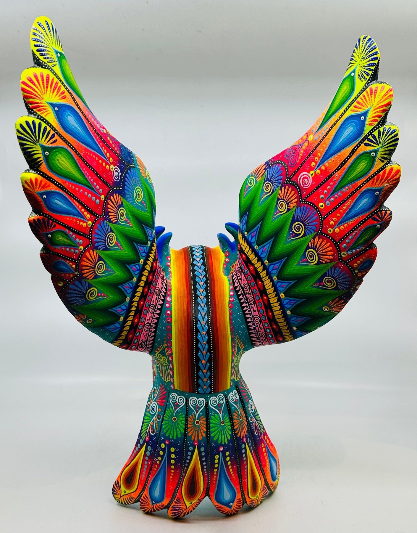 The more otherworldly of these pieces are called Alebrijes; creatures born from the fever dreams of famed Mexican artist Pedro Linares in the late 1930's. This imagery has come to be predominant in Mexican wood carving and paper maché artwork.