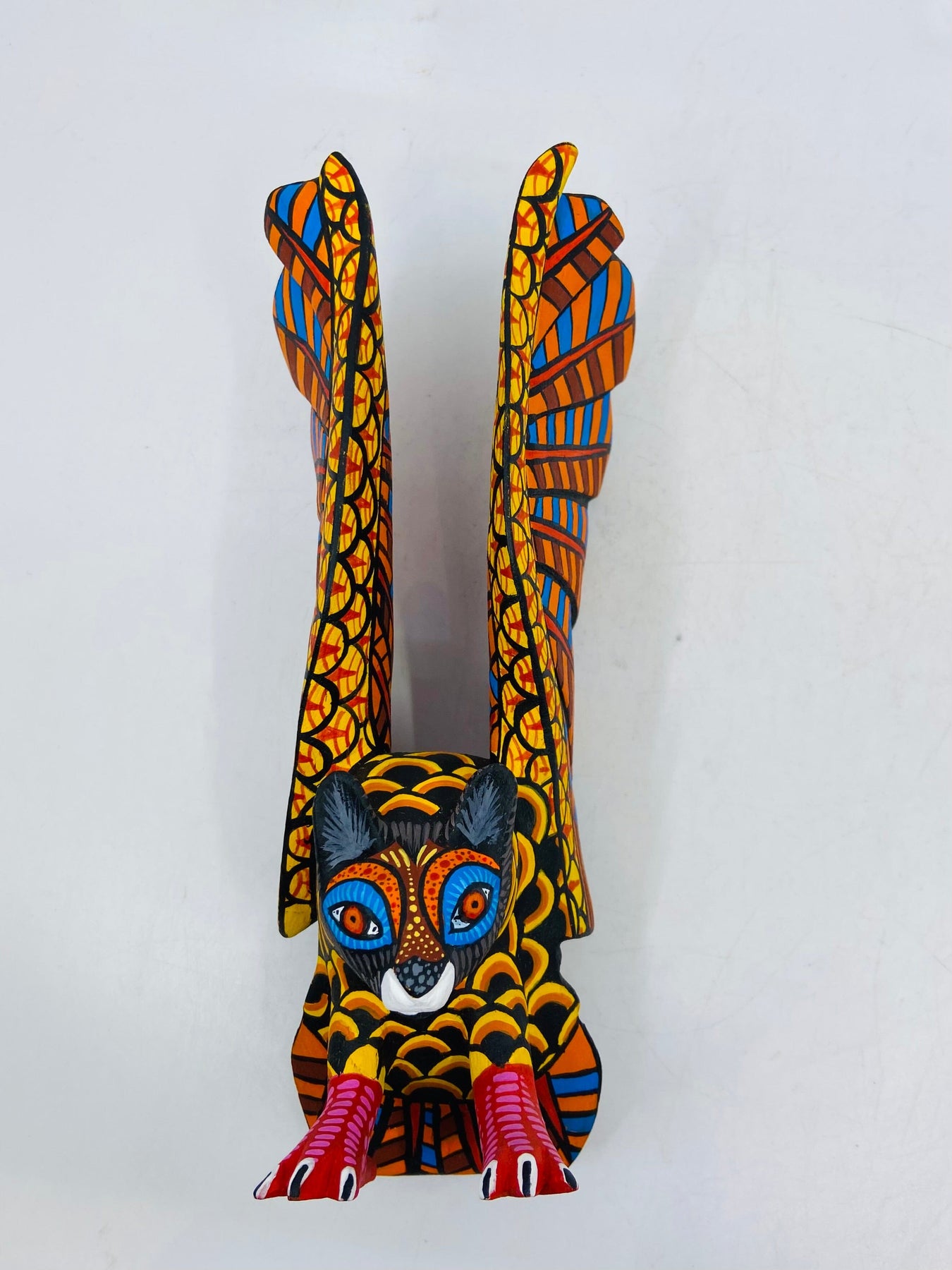 Each figure is handmade from copal wood using machetes and pocket knives. Artists carve the basic shape of a figure in a few days and then spend several days creating the fine detail. They further hand sand each piece and then spend several days in the painting process. The artists use fantasy and imagination in their intricately painted designs. The carvings are full of movement and humor and are an authentic folk art form that knows no boundaries.