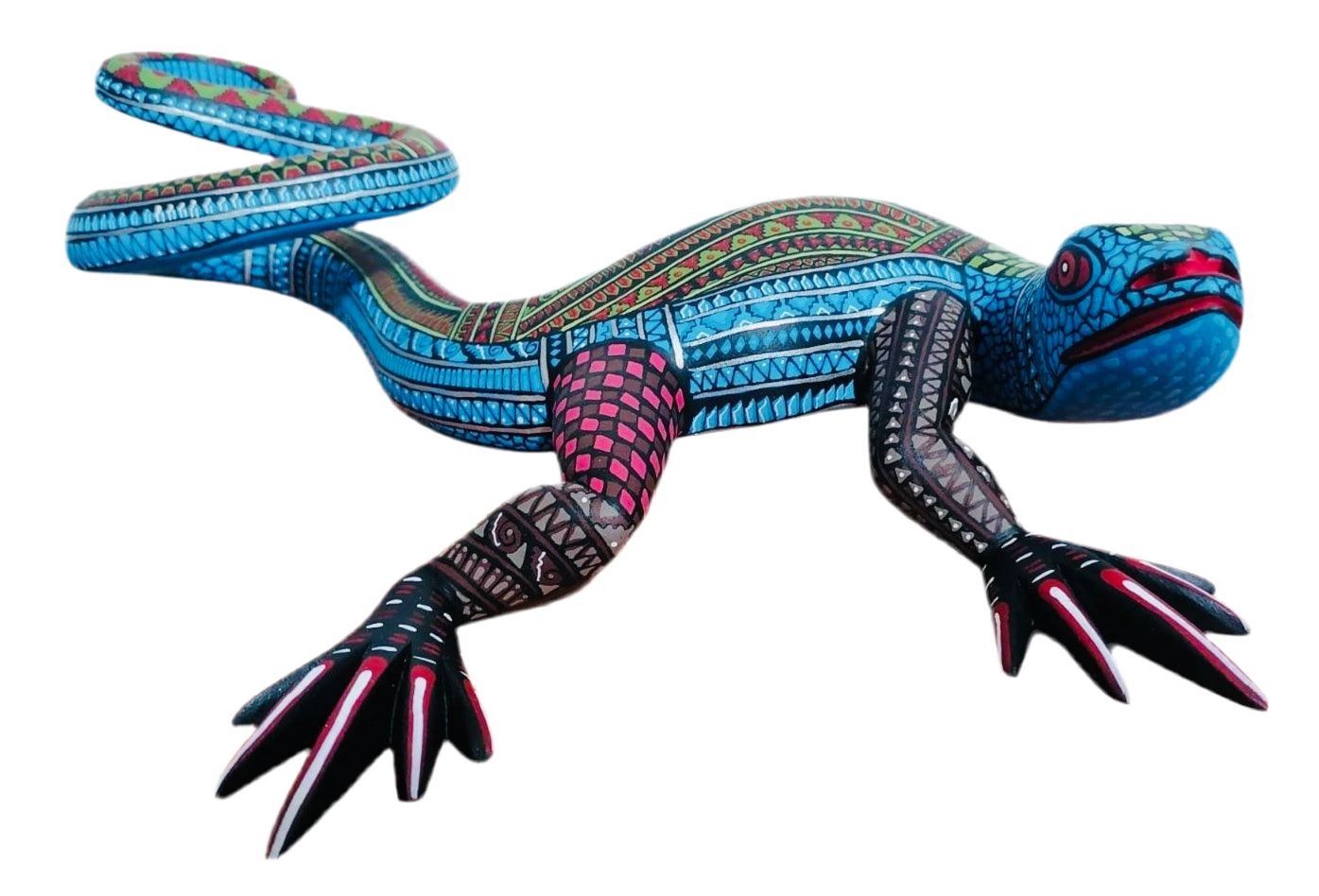 Each figure is handmade from copal wood using machetes and pocket knives. Artists carve the basic shape of a figure in a few days and then spend several days creating the fine detail. They further hand sand each piece and then spend several days in the painting process. The artists use fantasy and imagination in their intricately painted designs. The carvings are full of movement and humor and are an authentic folk art form that knows no boundaries.