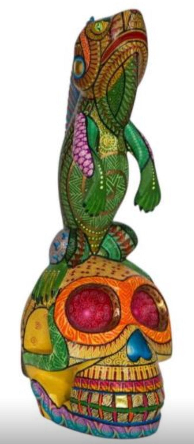 Hand carved and painted wood carving, made in Oaxaca Mexico by master wood carver Vasquez family.