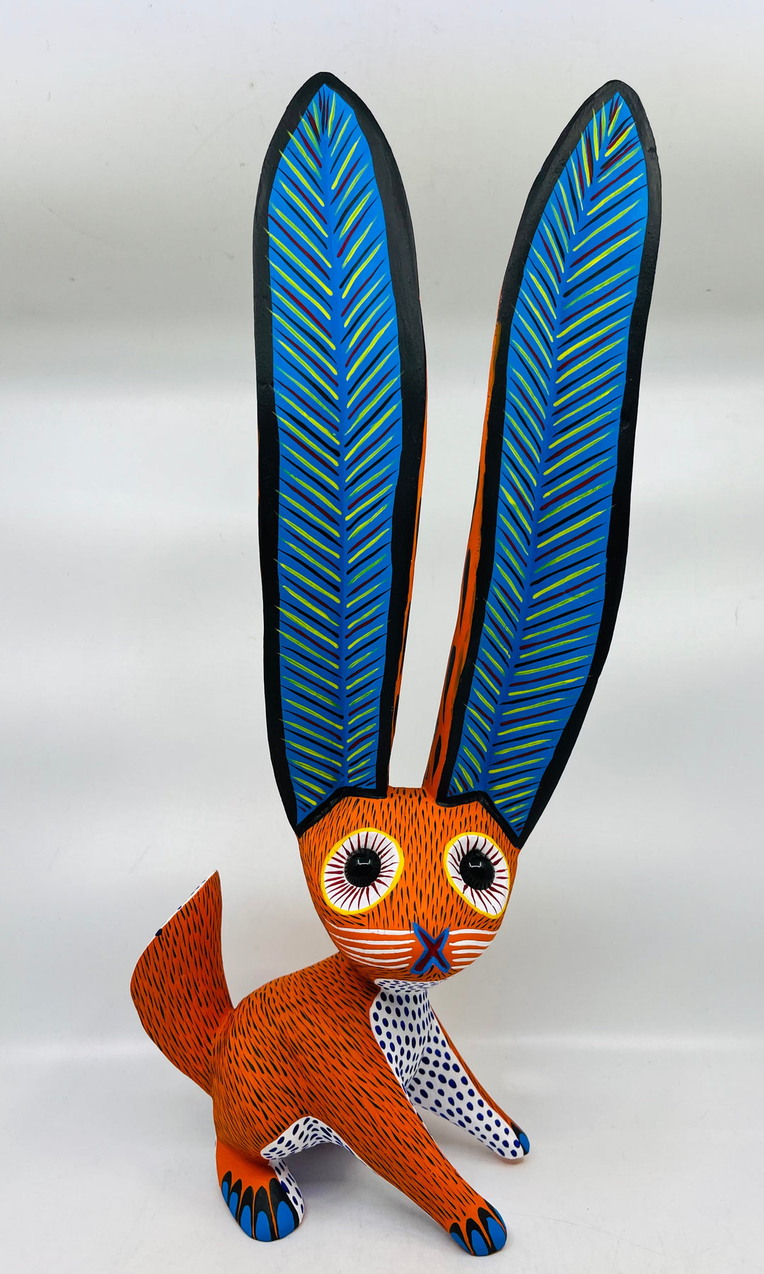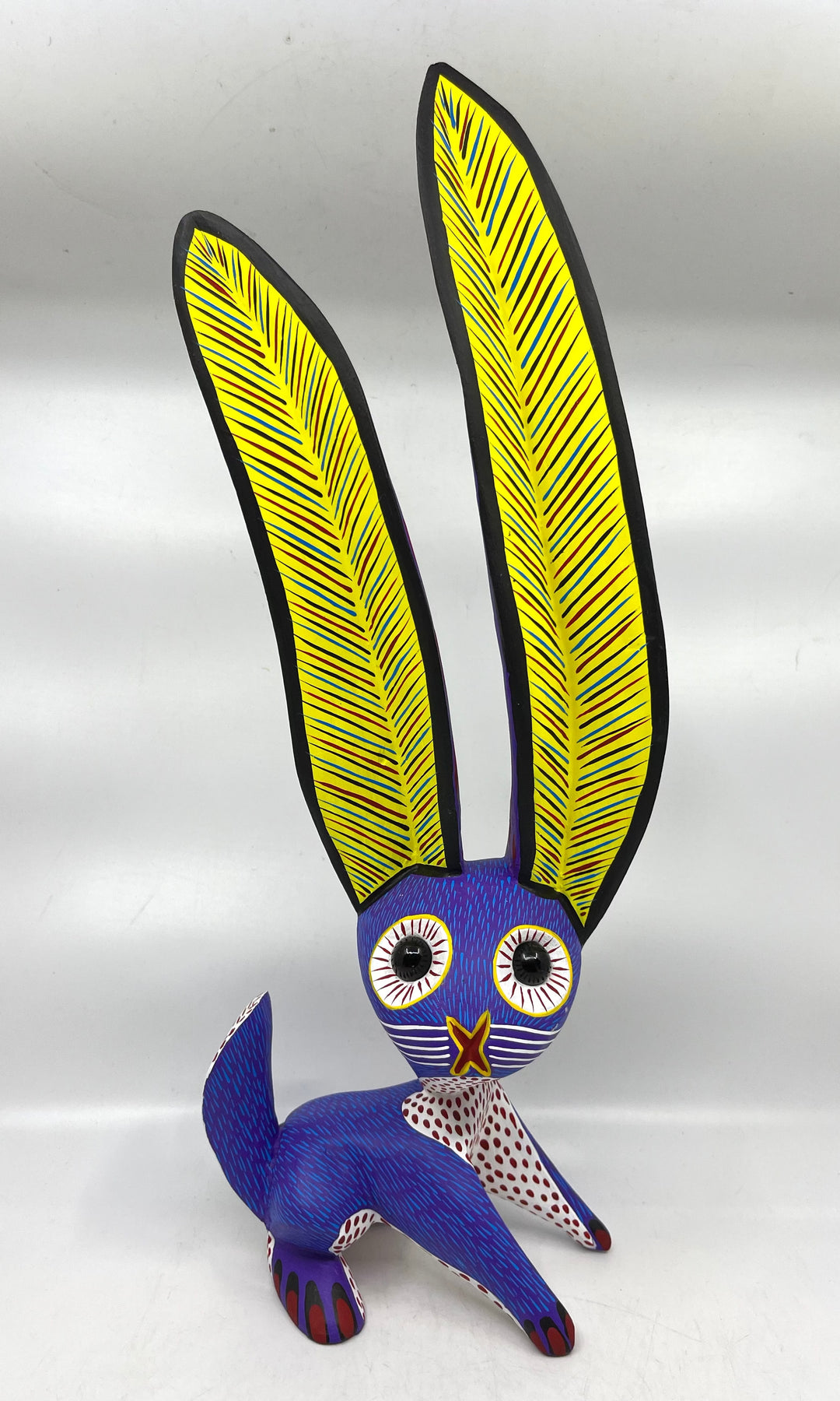 The more otherworldly of these pieces are called Alebrijes; creatures born from the fever dreams of famed Mexican artist Pedro Linares in the late 1930's. This imagery has come to be predominant in Mexican wood carving and paper maché artwork.