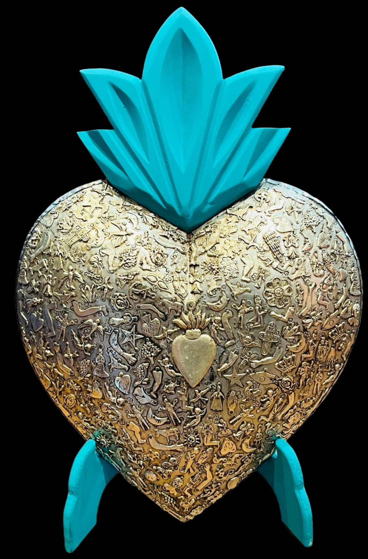 Each figure is handmade from copal wood using machetes and pocket knives. Artists carve the basic shape of a figure in a few days and then spend several days creating the fine detail. They further hand sand each piece and then spend several days in the painting process. The artists use fantasy and imagination in their intricately painted designs. The carvings are full of movement and humor and are an authentic folk art form that knows no boundaries.